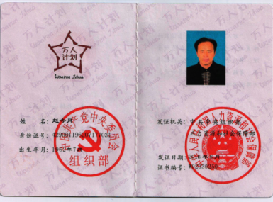 國(guó)家萬(wàn)人計(jì)劃證書(shū)