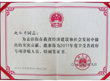 省人民政府專(zhuān)項(xiàng)津貼證書(shū)